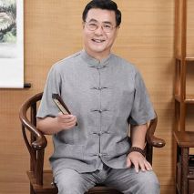 中老年唐装爸爸装男士唐装老年人套装爷爷棉麻唐装中国风短袖唐装
