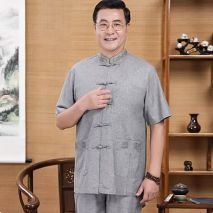 中国风男短袖唐装亚麻中老年唐装爸爸唐装品质唐装