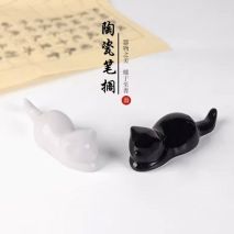 多功能陶瓷笔搁个性笔架创意动物中国风汝窑可爱小猫咪茶宠摆件哥窑毛笔笔托茶玩文房四宝书法国画用品