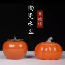 书法用具陶瓷摆件研磨用水滴小号铜勺水勺墨汁磨墨舀水专用手工陶瓷柿子南瓜小水盂文房四宝用品