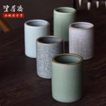 中国风陶瓷多功能笔筒大号简约时尚复古创意文具收纳盒学生大容量圆形毛笔筒笔桶办公桌摆件