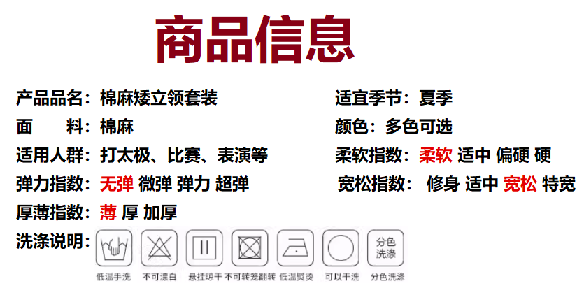 适用对象: 男女通用 适用场所:打太极、比赛、表演等