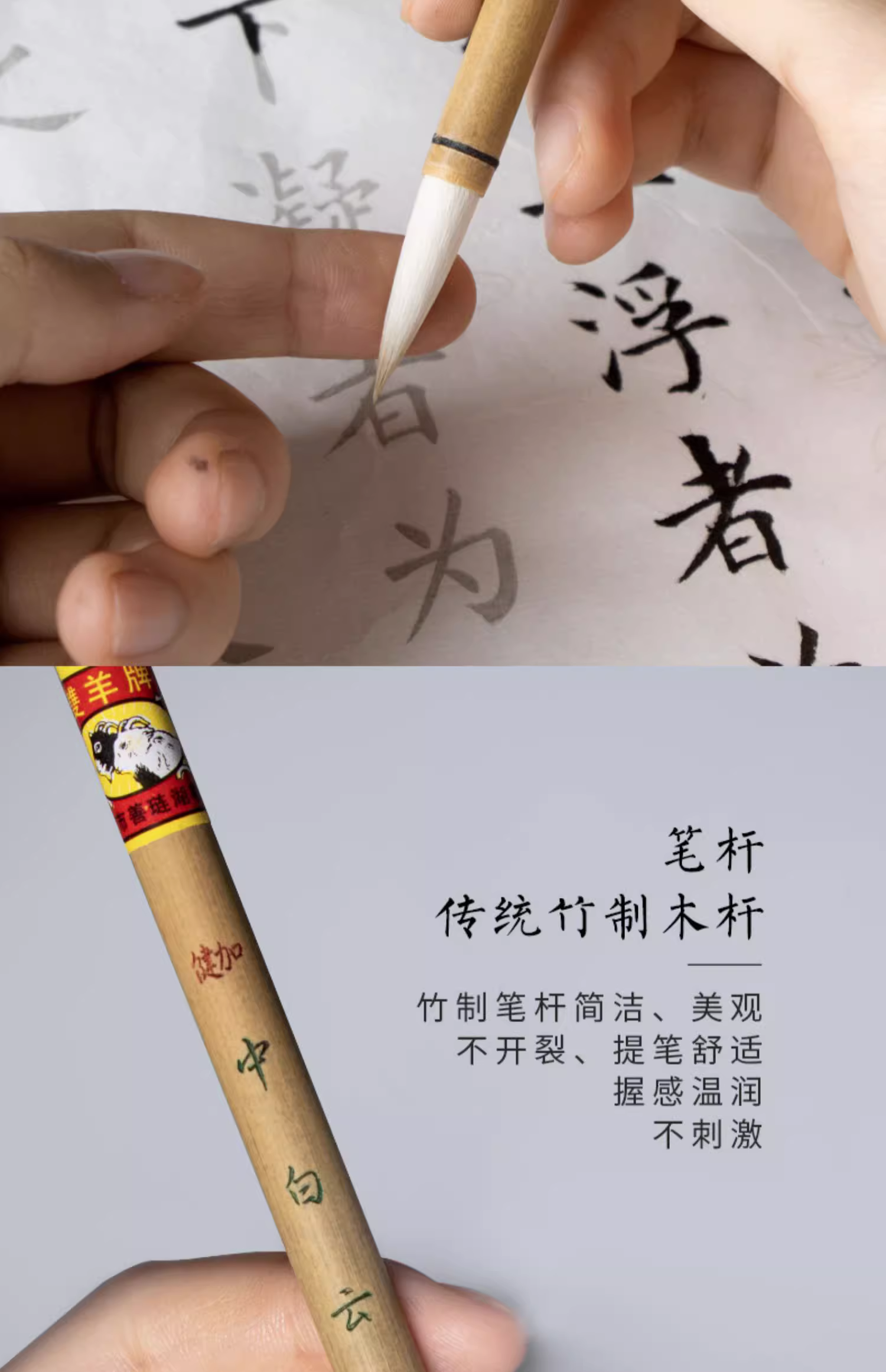 选择一支好笔是练好字的关键步骤。这款毛笔的笔头采用传统手工制作,选用细腻柔润的毛料制作而成,因此蓄墨效果非常好。笔杆采用传统的竹制木杆制作,不仅外观简洁、美观,而且非常耐用,不会开裂。提笔时,握感温润,不会刺激手部皮肤。此外,还配有挂绳设计,方便将毛笔收纳盒悬挂起来。