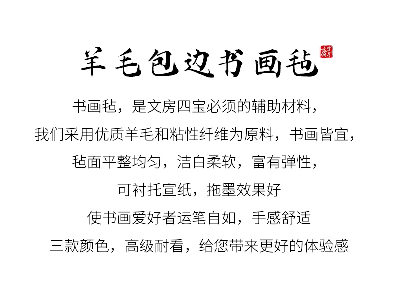 材质:混纺纤维 厚度:加厚5mm 适用场景:书法、练字、绘画