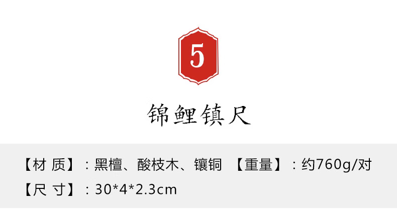 品牌:紫芳斋 材质:双鱼黑檀木镇尺 适用场景:绘画、练字