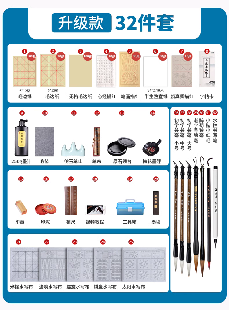 这款高品质的书法套装,将为您的书法和绘画创作提供极大的便利。其设计简洁实用,旨在满足您的各种书写和绘画需求。