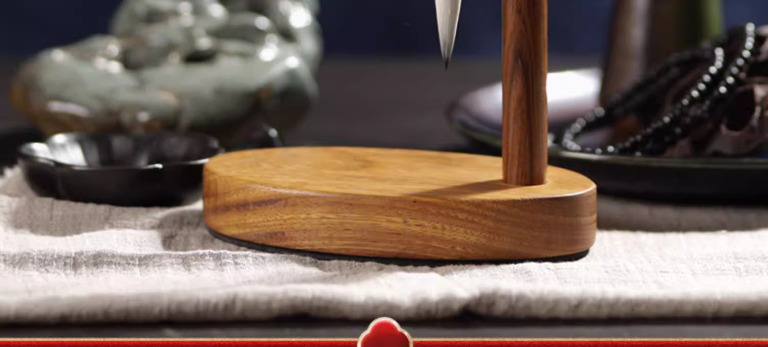 这款桐木笔挂,以其坚硬的木质和美观的纹理,彰显出独特的简约风格。其精细的做工和典雅大气的整体造型,给人一种古朴文艺之感。