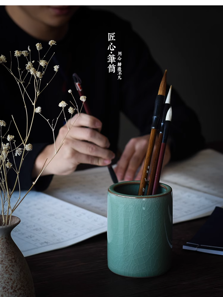 这款中国风陶瓷多功能笔筒不仅简单实用,而且充满中国传统文化韵味,是您书房中不可缺少的一件文房用品。