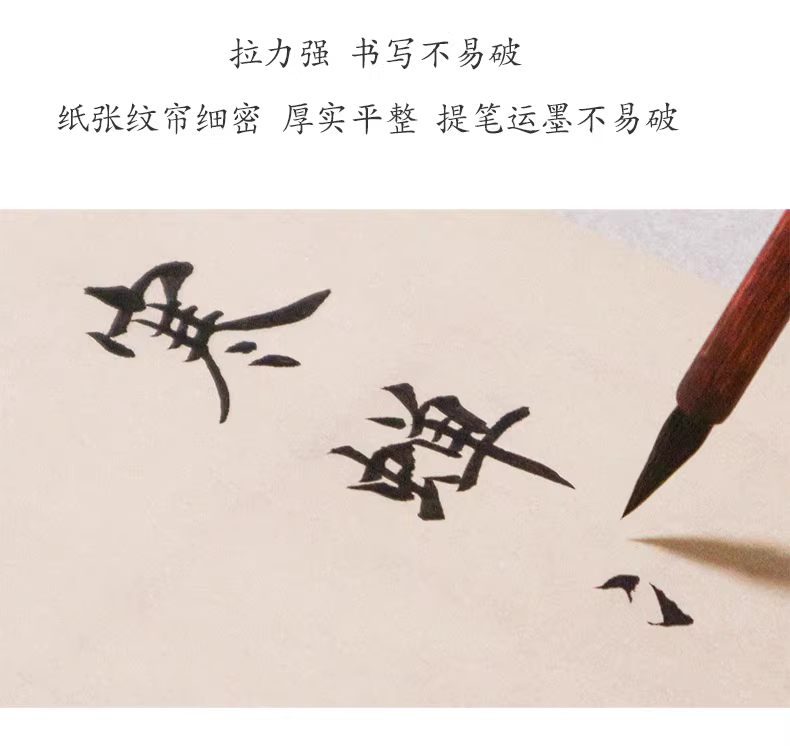 这款毛边纸,传承古法制作,选用天然竹浆,不经过漂白和添加,保留了竹子的原始纤维和天然色泽。其手工仿古的特点,使得纸面呈现出自然毛边,书写时能够更好地吸附墨水,让字迹更加清晰。同时,这款毛边纸还具有不洇不透的特性,适合各种书法和绘画的创作,即使是初学者也能轻松驾驭。