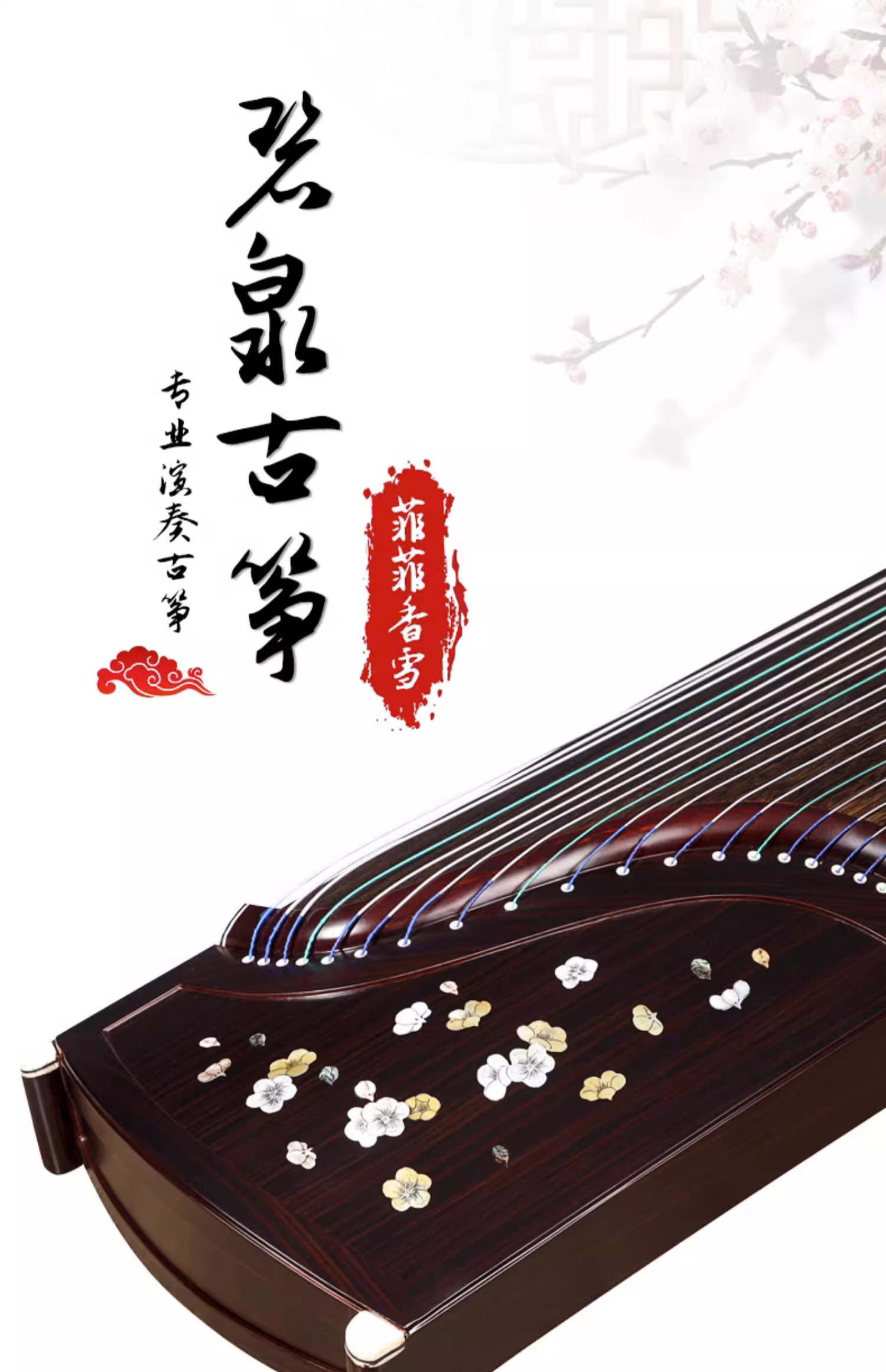 古筝的工艺采用嵌彩贝,使得外观更加精美,同时也增加了古筝的音色和音质。菲菲香雪的款式设计充满诗意和浪漫,非常符合古筝的文化内涵和艺术特点。