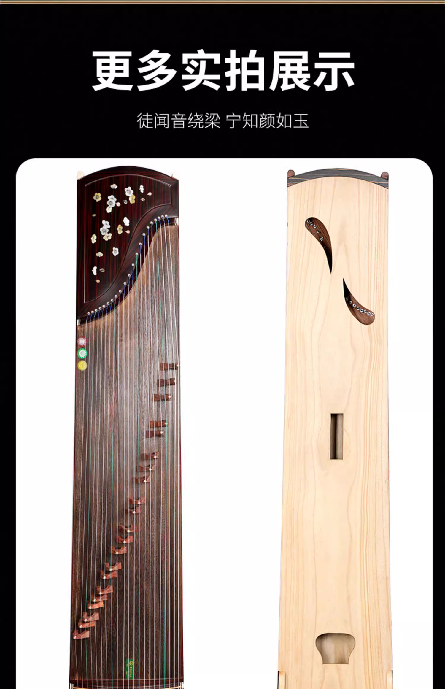 这款黑檀古筝采用珍贵的黑檀木制作而成,质地坚硬且外观高贵,具有很高的收藏价值。面板和底板均采用专业级桐木,经过精心挑选和处理,确保音质纯净清晰,没有杂音和干扰。