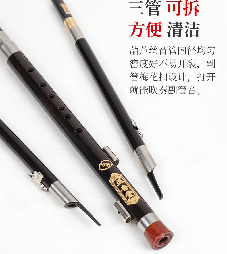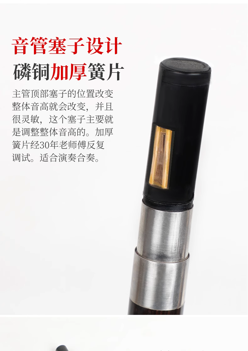 此款专业演奏级葫芦丝,精选黑檀制作音管,这种木材的硬度和美观度都非常出色,使得整个葫芦丝看起来非常硬朗,却又不失简约之美。这样的设计不仅让人一眼就能看出它的专业级别,也非常符合现代人的审美观。
