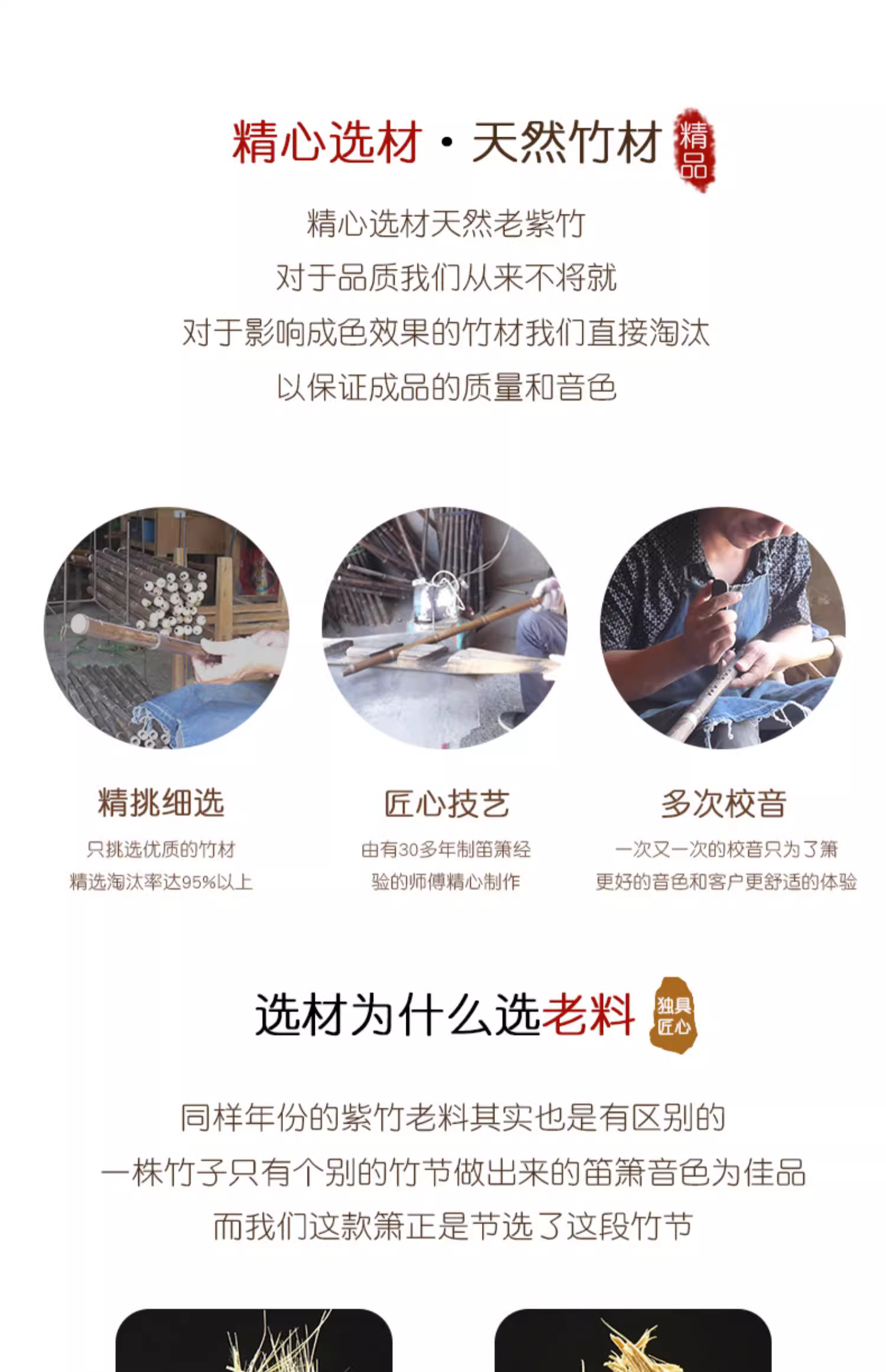 这款紫竹老料精品竹笛精选了五年以上竹龄的紫竹制作而成,竹丝纤维密而多,音色通透,密度大,音色佳,经久耐用。嘴口采用了黑色真牛角,美观大方上档次,防裂耐摔。笛孔圆润,确保音色音准好吹。