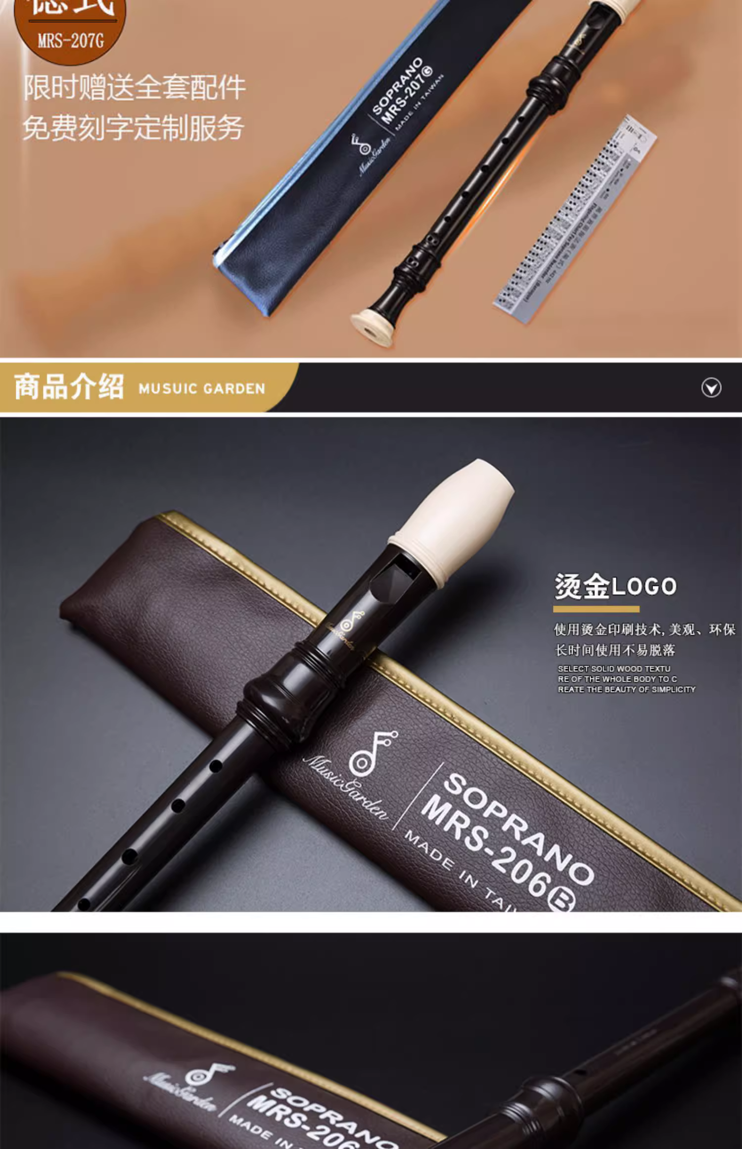竖笛采用三节式设计,方便清洗和保养。在需要重奏时,这种设计使得调整音高更加便捷。