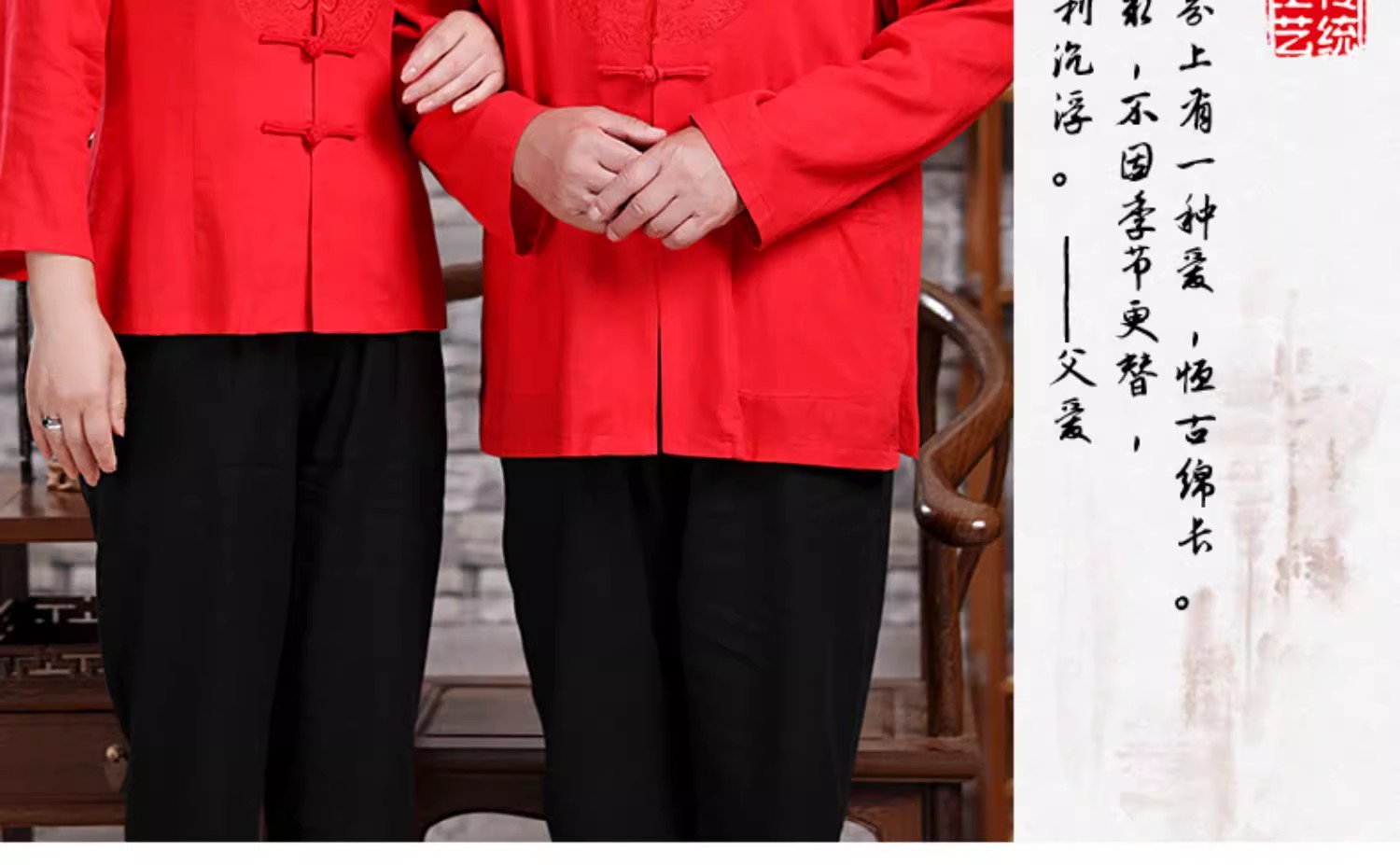 这款中老年唐装的面料柔软舒适,这种面料通常具有很好的亲肤性和透气性,使得穿着体验更加舒适。此外,它的立体剪裁设计使得衣服能够更好地贴合身体,不会产生紧绷和不舒适的感觉。这些特点都使得这款唐装成为适合送给父母和长辈的理想选择。