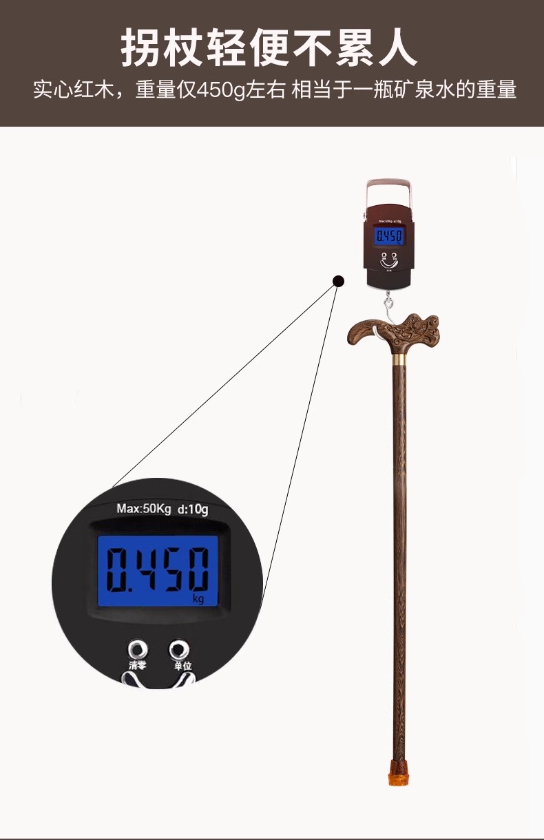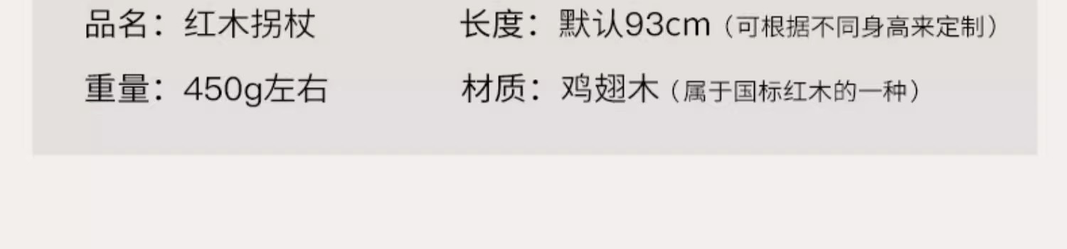 这款实木老人拐杖采用珍贵的鸡翅木材质,展现出其高贵独特的木质纹理和品质。鸡翅木因其独特的纹理和硬质被广泛用于制作高端家具、饰品和饰材,此款拐杖便充分展现了鸡翅木的优美特质。