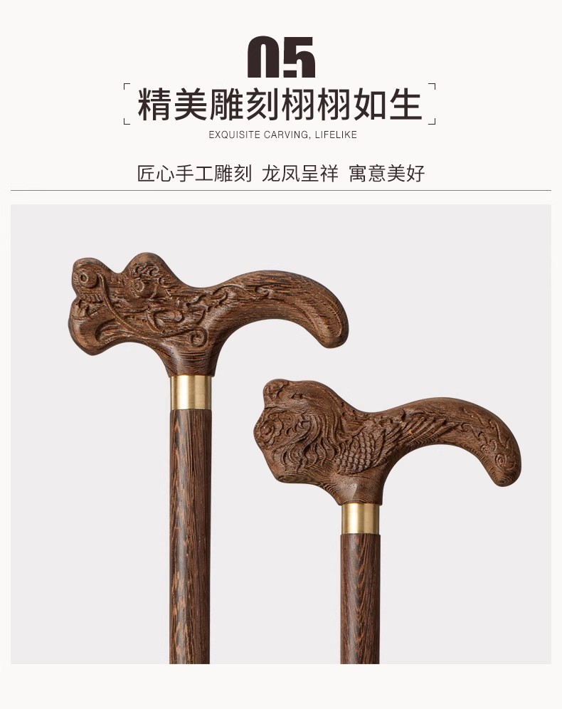 这款鸡翅木拐杖采用优质的鸡翅木材质制成,表面经过精心打磨,呈现出独特的纹理和光泽。手柄部分符合人体工程学原理,握感舒适,使用方便。