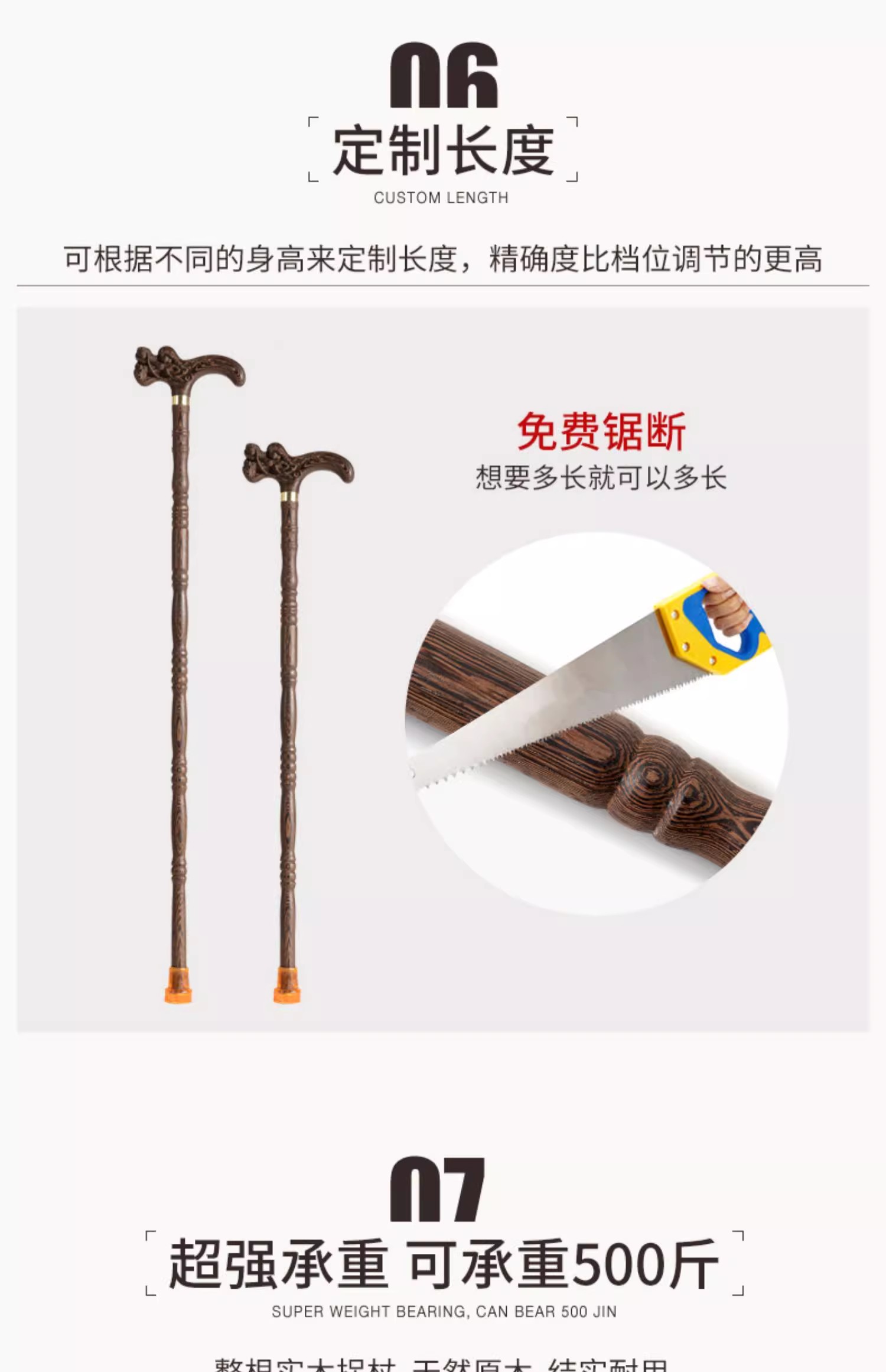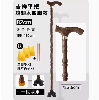 拐杖的主体部分由珍贵的鸡翅木制成,这种木材具有独特的纹理和色泽,经过精细的雕刻工艺处理后,展现出一种高贵而典雅的风格。把手部分采用了人体工程学设计,手感舒适,不易滑动,为老年人提供了稳定的支撑。