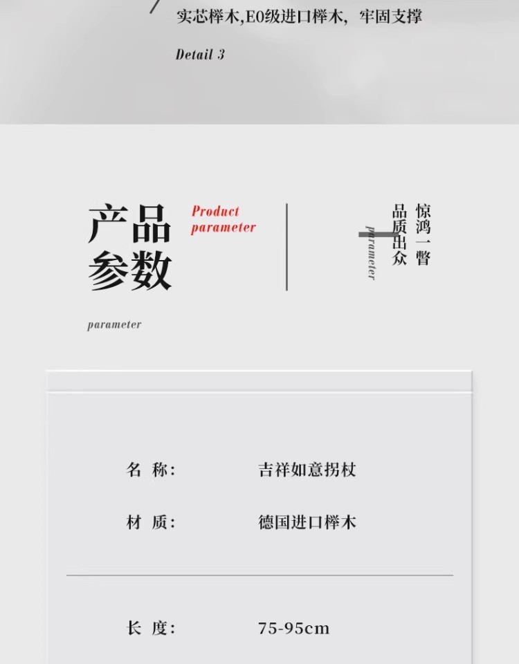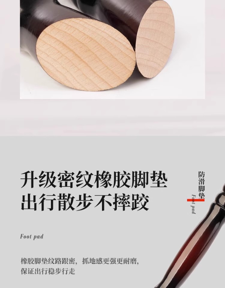 这款进口榉木实木老人拐杖,选用天然原木材质,经过精工雕刻,呈现出独特的纹理和质感。手柄部分采用人体工程学设计,握感舒适,不易滑落,为老年人提供了稳定的支撑。