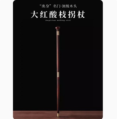 这款大红酸枝拐杖,选用珍贵的天然原木材质,经过精心挑选和制作,呈现出独特的纹理和色泽。手柄部分采用人体工程学设计,握感舒适,不易滑落,让老年人在使用时更加得心应手。