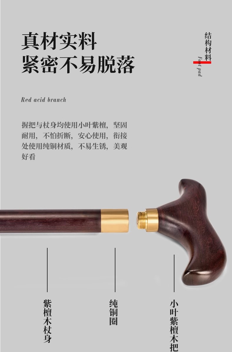 这款拐杖的设计独具匠心,不仅外观美观,更注重实用性和舒适性。手柄部分采用人体工程学设计,握感舒适,不易滑落,让老年人在使用时更加得心应手。同时,拐杖的重量轻便,易于携带和存放,特别适合老年人使用。