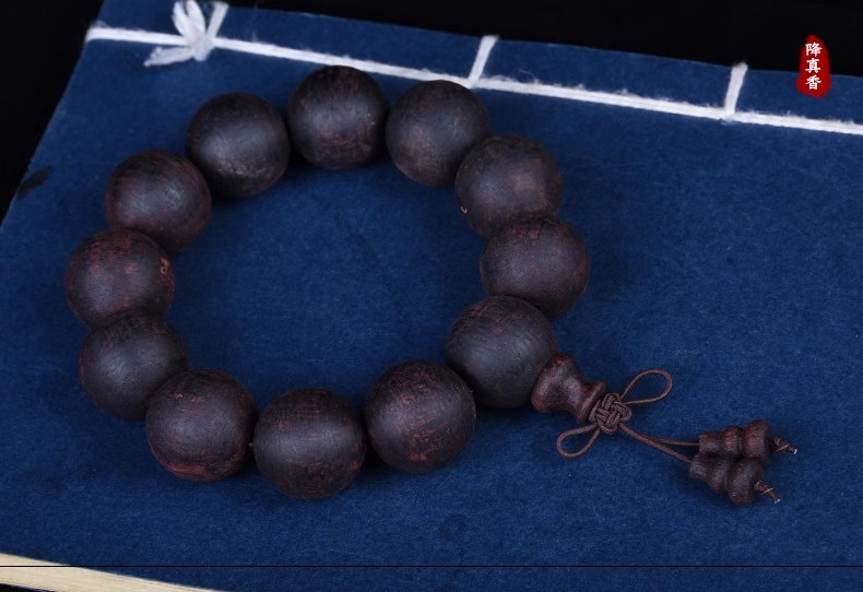 这款佛珠手串采用降真香材质制成,非常独特。降真香是一种珍贵的香料,具有浓郁的香气和特殊的质地。这种材质遇热时会出油,使手串呈现出更加润泽和光滑的表面。由于降真香本身具有油性,因此盘玩时无需使用手套,可以直接上手盘玩。这种手串非常适合喜欢直接与材质接触的玩家。