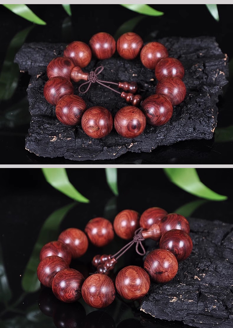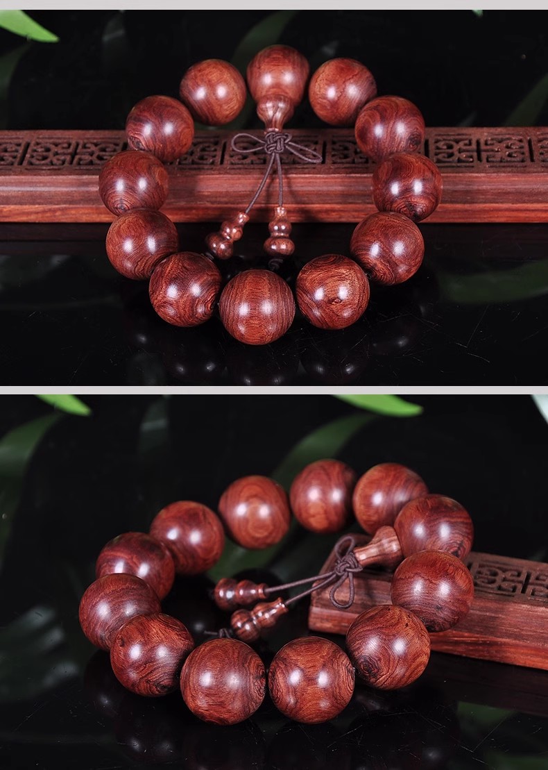 这款紫檀柳手串采用葫芦造型,小巧精致,非常适合佩戴和盘玩。紫檀柳是一种珍贵的木材,呈现出美丽的紫色和深红色,具有天然的油脂和独特的纹理。葫芦造型是传统文化中寓意吉祥、长寿和幸福的象征,与紫檀柳的材质相得益彰。