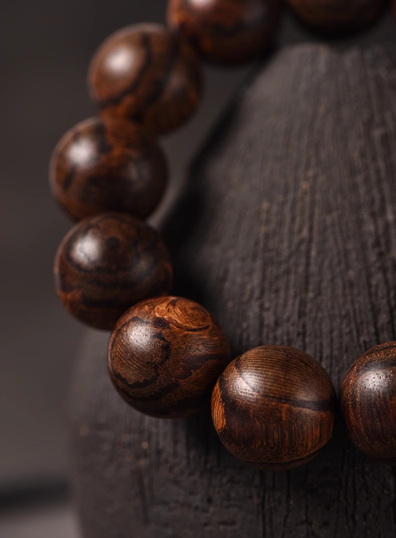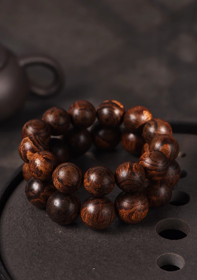 这款手串由越南富森地区的沉香木制成,每一颗珠子都经过精心挑选和加工,呈现出独特的纹理和光泽。手串的香气浓郁而持久,让人感受到沉香木特有的幽雅香气,具有舒缓情绪、减轻压力、改善睡眠等多种功效。