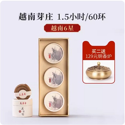 品牌:美真香 香味:沉香:越南芽庄(1.5小时/60环) 包装种类:礼品装