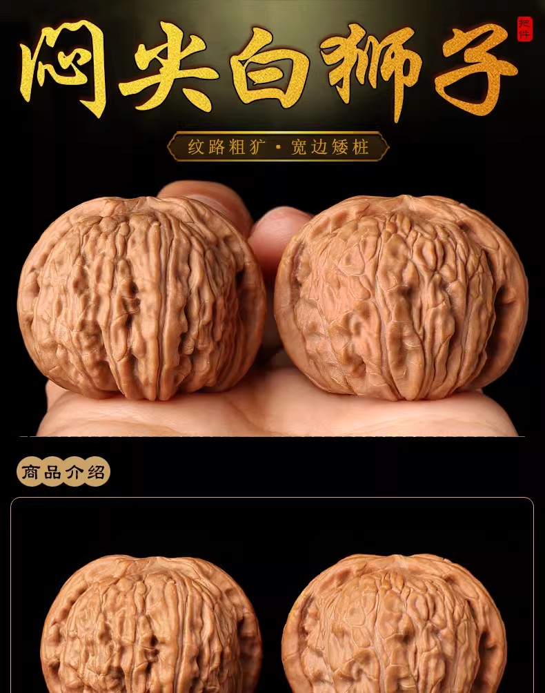 品牌:福瑞堂 颜色分类:文玩核桃闷尖白狮子边宽33mm一对 材质:桃核