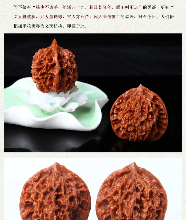 满天星文玩核桃的纹路漂亮,上色速度快,这也是其受到许多文玩爱好者喜爱的原因之一。在把玩和收藏这种核桃时,需要注意一些问题。首先,要避免过度用力掰弄或者摔打核桃,以免损坏或者破裂。其次,要定期清洁和保养核桃,保持其干净和光泽。
