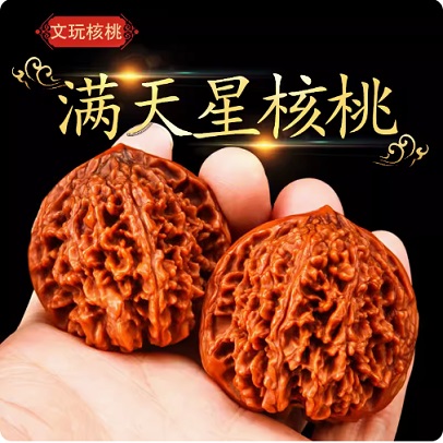 这款满天星狮子头核桃,经过精选的天然桩型,呈现出自然、优美的形态。在手感方面,它表现出良好的质地和重量感,让人一上手就能感受到它的沉甸甸的分量。
