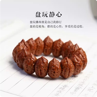 手串上的每颗核桃都经过精心挑选,确保其形状、大小、纹理等方面都符合一定的标准,使得整串手串看起来更加协调、美观。同时,每颗核桃的饱满程度和脑纹清晰度也都经过严格筛选,确保其品质和盘玩效果达到最佳。