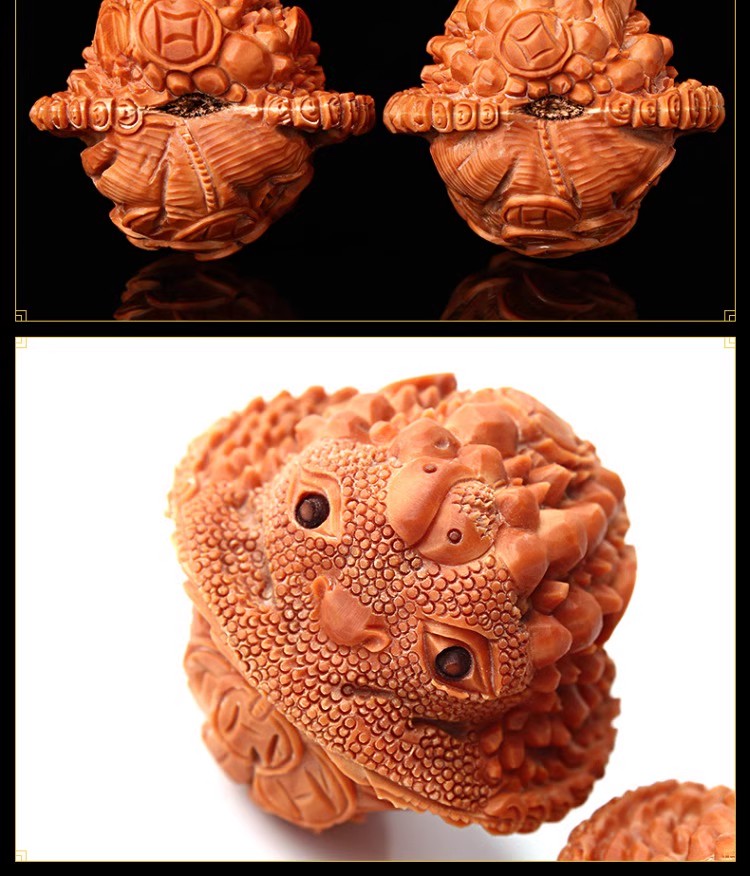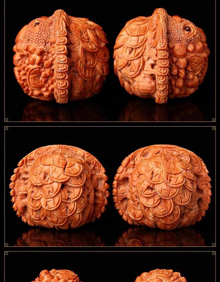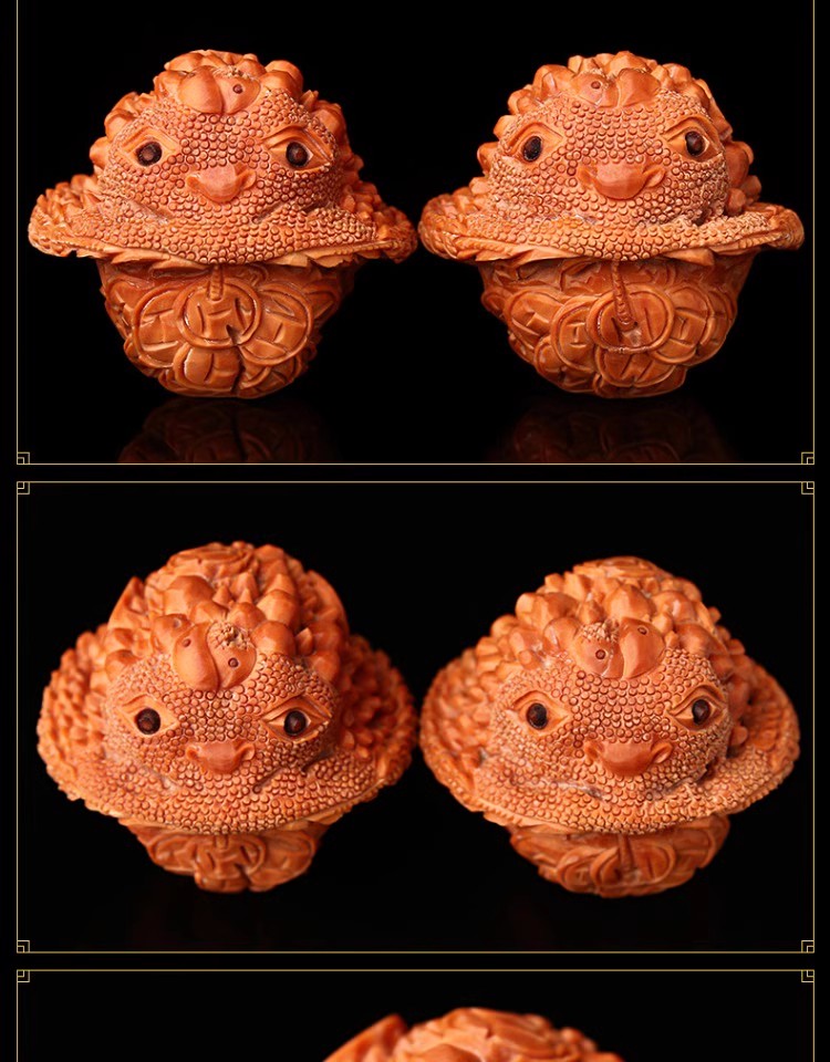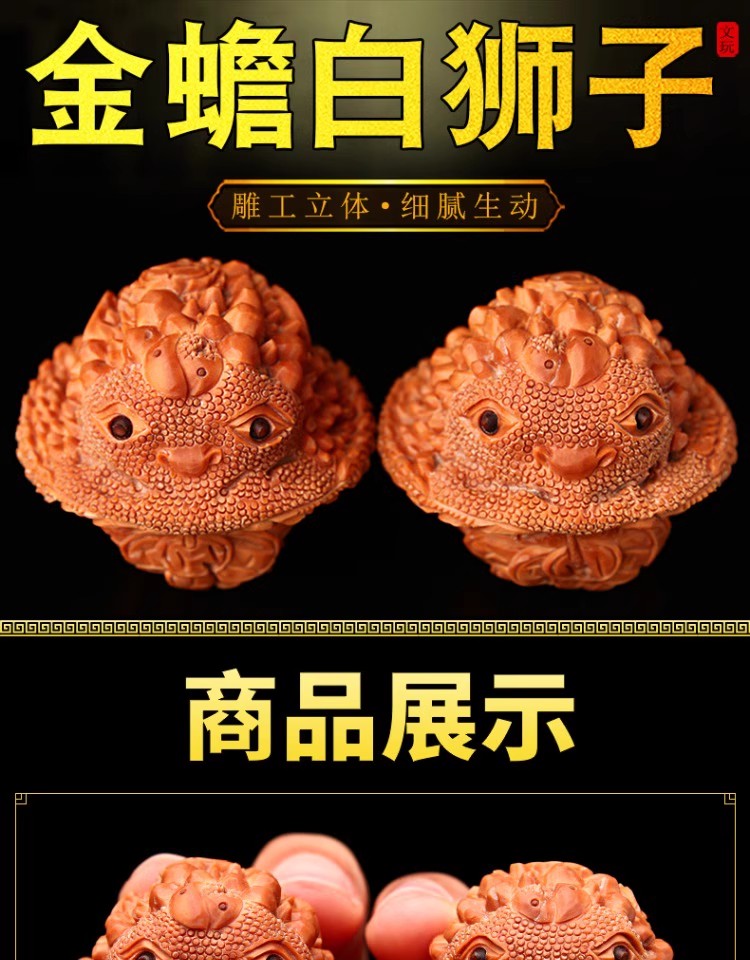 在盘玩金蟾白狮子文玩核桃时,可以采用指腹揉捻法或双手搓揉法等方法,让核桃的纹路更加深入,颜色更加鲜艳。同时,需要注意不要让核桃受到撞击或摩擦,避免损伤核桃的表面。
