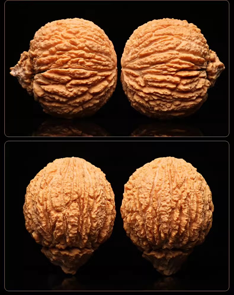 姜黄头金丝猴头文玩核桃是一种非常珍贵的文玩品种。它的皮质为姜黄色,颜色鲜艳,非常漂亮。这种核桃的纹路深邃、清晰,线条流畅,具有很高的艺术欣赏价值。同时,它的质地坚硬、细腻,手感非常好,给人一种非常舒适的感觉。