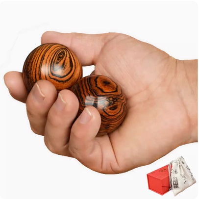 这款健身球采用了珍贵的黄花梨木材质,原木实心,具有不凉不燥的特点,非常适合把玩和按摩。黄花梨木是一种高密度、坚硬的木材,其纹理自然、色泽温润,给人一种温暖、高贵的感觉。