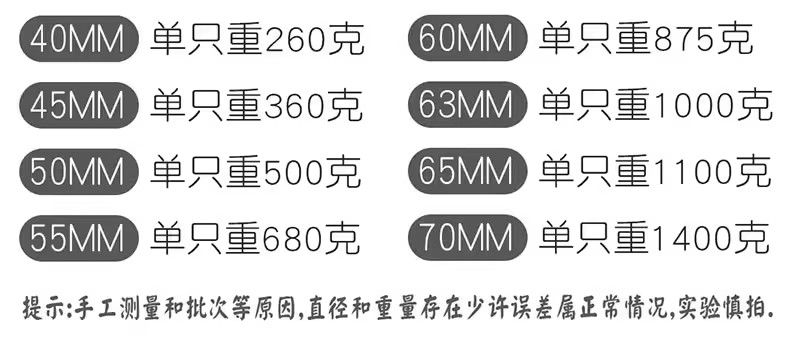 初练时可选小型号,待练熟后,逐步选购较大型号。