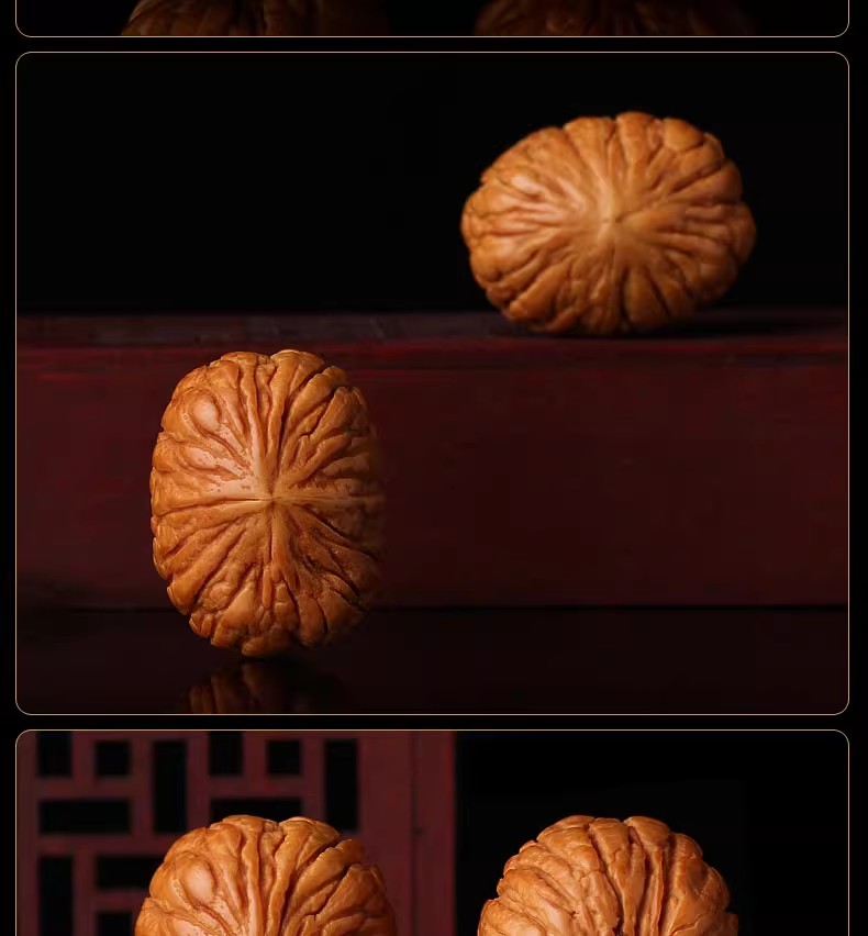 高抛工艺使得这款核桃表面光滑如镜,手感顺滑舒适。在把玩过程中,手部与核桃的摩擦力增加,有助于促进手部血液循环和穴位按摩。这款核桃的油性十足,经过精心挑选和加工,能够自然呈现出浓郁的核桃香味。