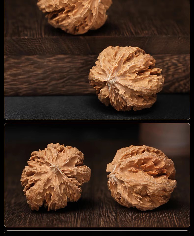 它的纹理如艺术品般令人陶醉,每一颗核桃的纹理都是独一无二的,犹如自然界中的奇迹。这些纹理不仅赋予了核桃独特的美丽,同时也提供了良好的抓握感,让您在把玩时感受到强烈的扎手质感。