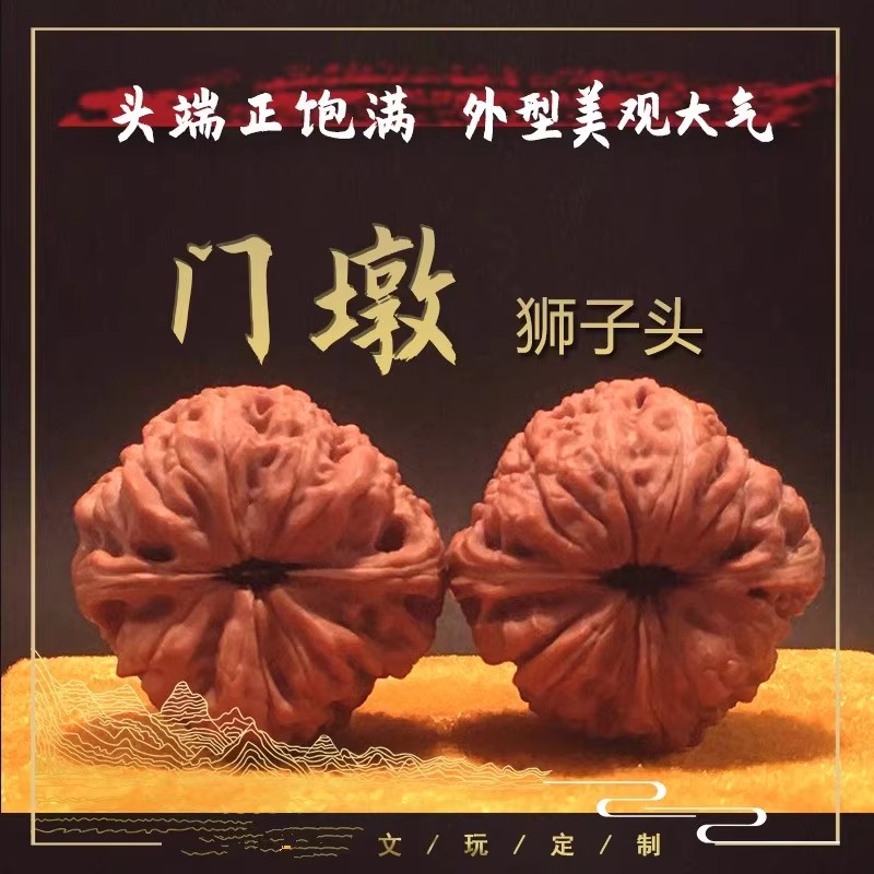 门墩狮子头核桃的命名源于其形状,犹如古时门口的狮子造型,既具有传统文化的寓意,又体现了文玩核桃的美学价值。此款核桃经过精心的采摘、挑选和加工,确保每一颗都达到最佳的品质和外观。