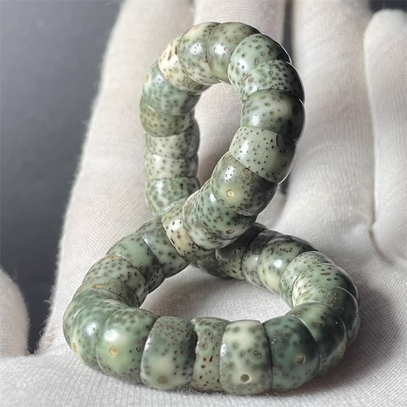这款星月菩提手串选用原生态石玉进行斜切,呈现出独特的纹理和色泽。它由精选的星月菩提子搭配精美珠子和优质线绳组成,经过精细打磨和抛光,表面光滑如镜,手感舒适,星月菩提子是佛教中的一种宝石,被认为具有辟邪避灾、祈福吉祥的作用。手串的设计简洁大方,既适合佩戴也适合收藏。