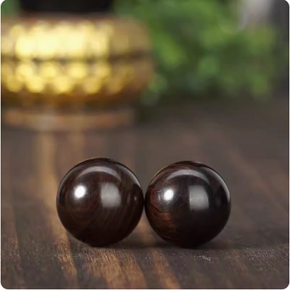 这款紫光檀木健身球采用沉水老料精心制作而成,质地紧密,纹理清晰,乌黑亮丽。它具有高贵的气质和卓越的品质,让人爱不释手。