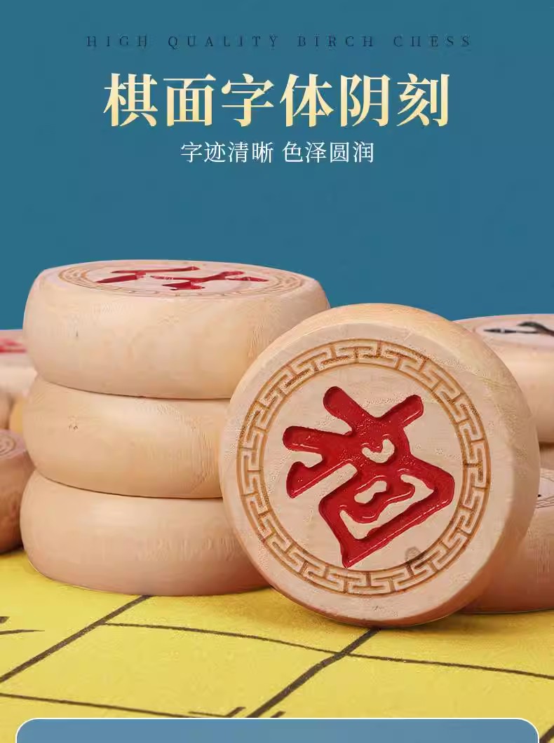 这款桦木象棋由于采用桦木材质,整个棋子的手感非常舒适,给人一种质朴、自然的感觉。棋子的色泽非常均匀,呈现出淡黄色,给人一种温暖、明亮的感觉。棋子表面经过特殊处理,具有较高的耐磨性,可以长时间保持棋子的完整性和美观度。