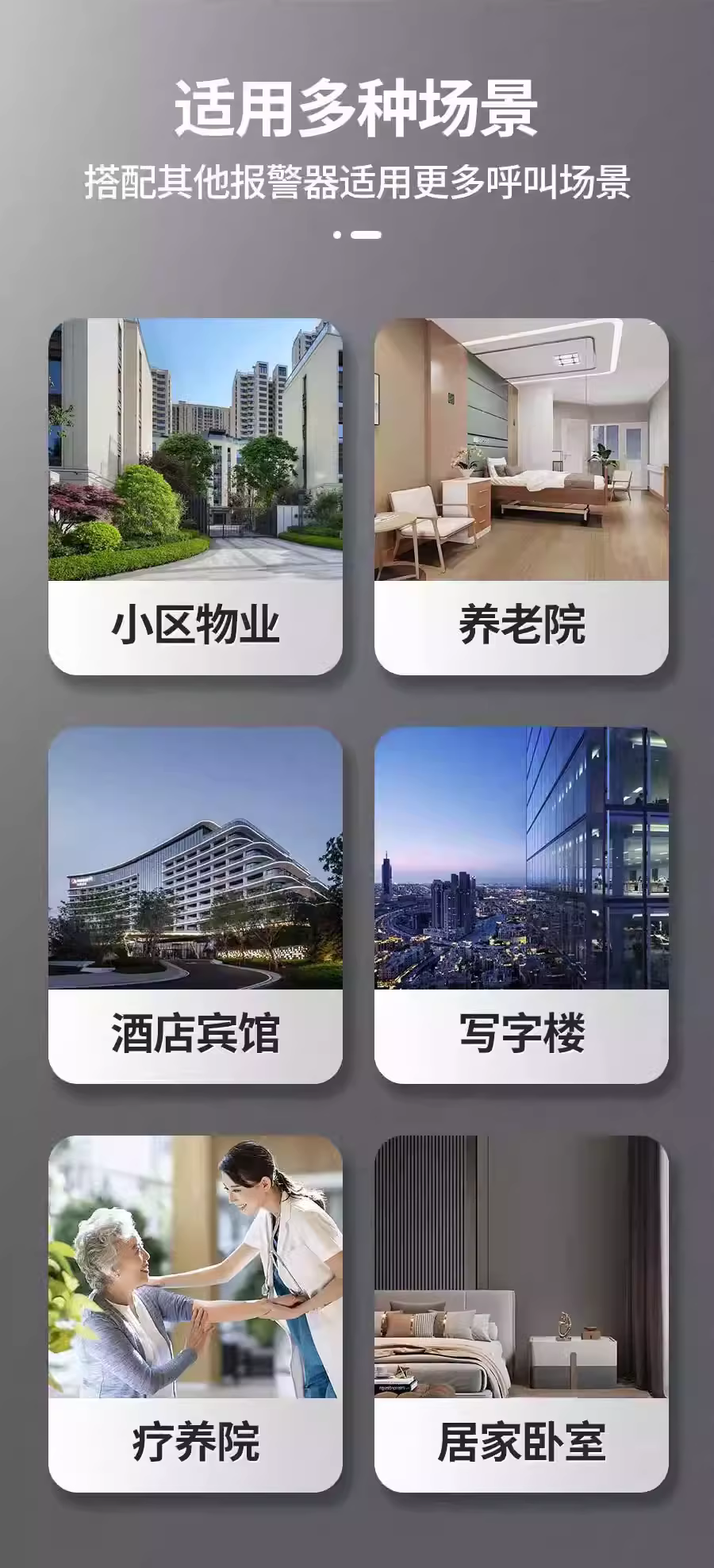 老年人可以在卧室、客厅、卫生间等场所安装紧急呼叫器,