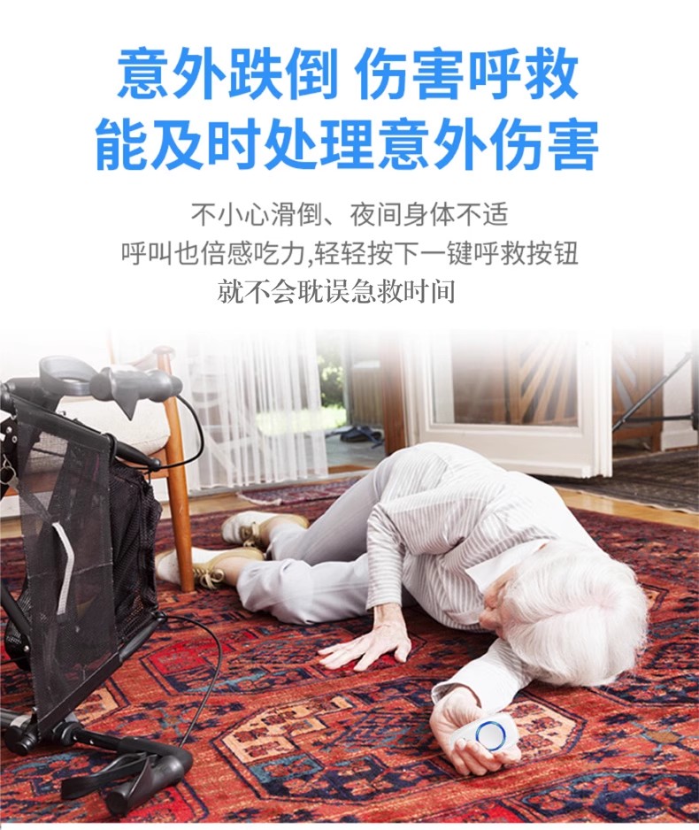 此外,这款紧急呼叫器还具有大音量提醒功能,可以让老人在家里任何地方都听到铃声,并且可以设置专属铃声,以便家人能够更快速地响应求助信号。