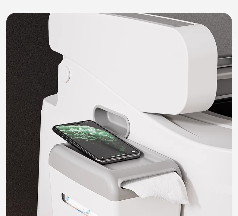 该坐便器具有可旋转扶手的设计,轻松上翻无需拆卸,方便使用。此外,它的整体式设计融入了人性化元素,如温馨扶手和真皮靠背,使得上厕所也能上出尊贵的感觉。