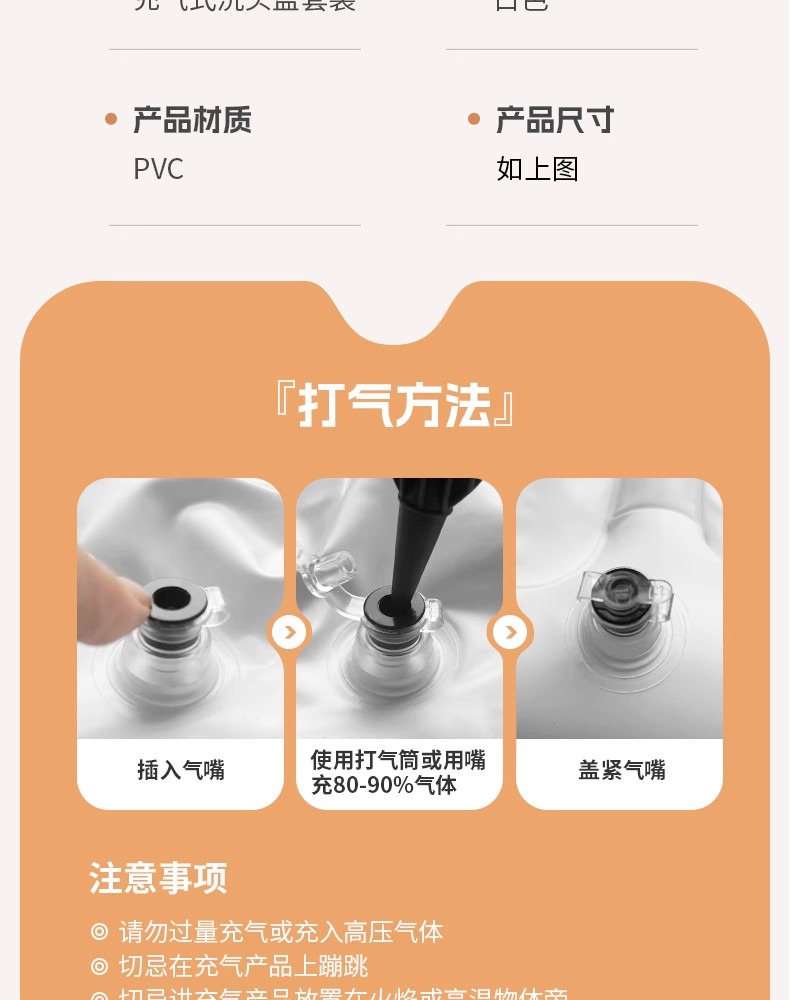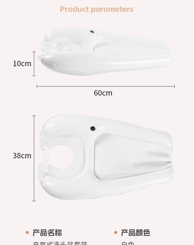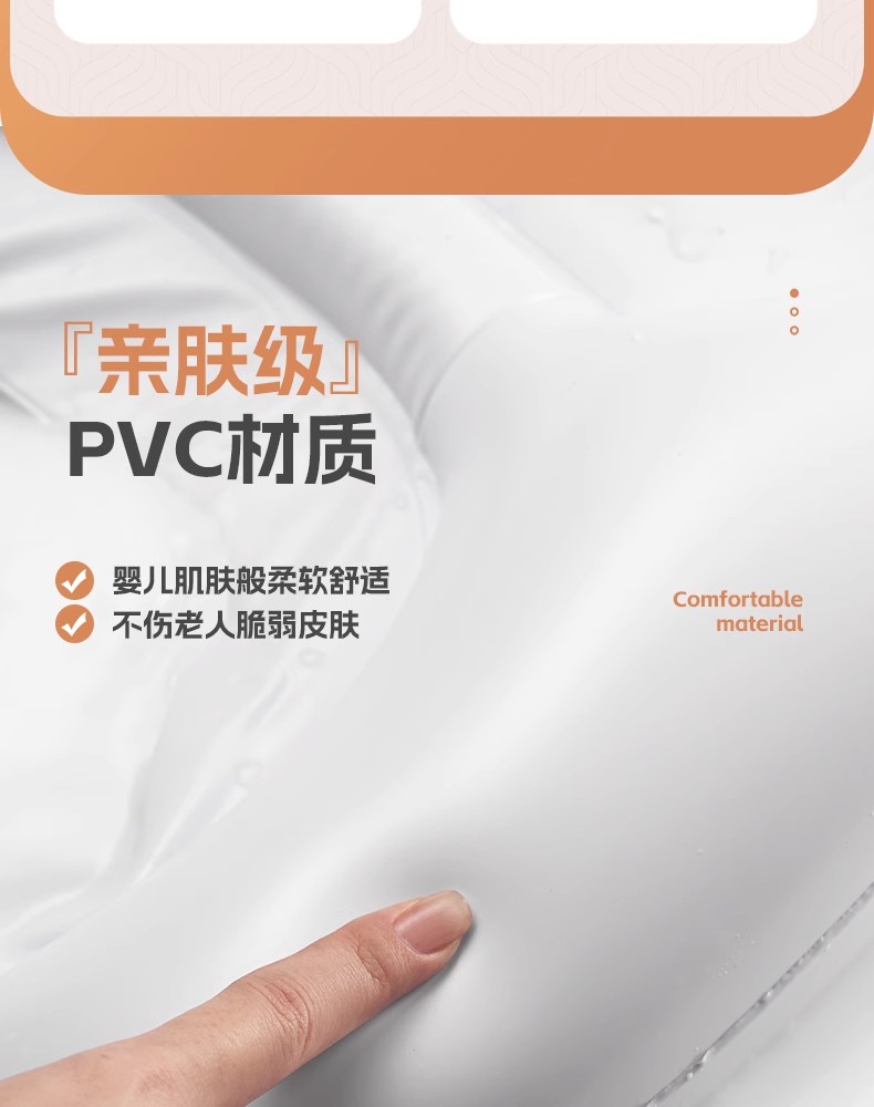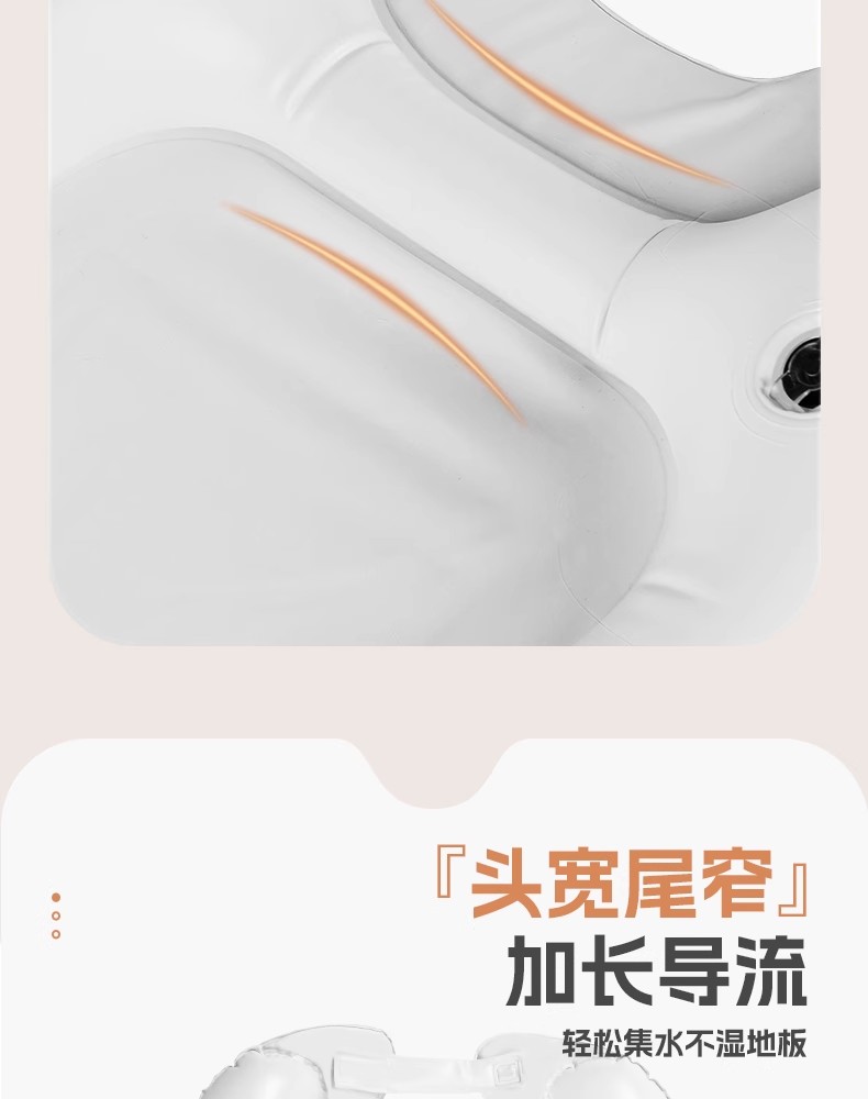 这款洗头盆采用PVC材质,这种材质具有柔软不伤皮肤的特性,非常适合用于洗头盆这种与皮肤直接接触的卫生用品。