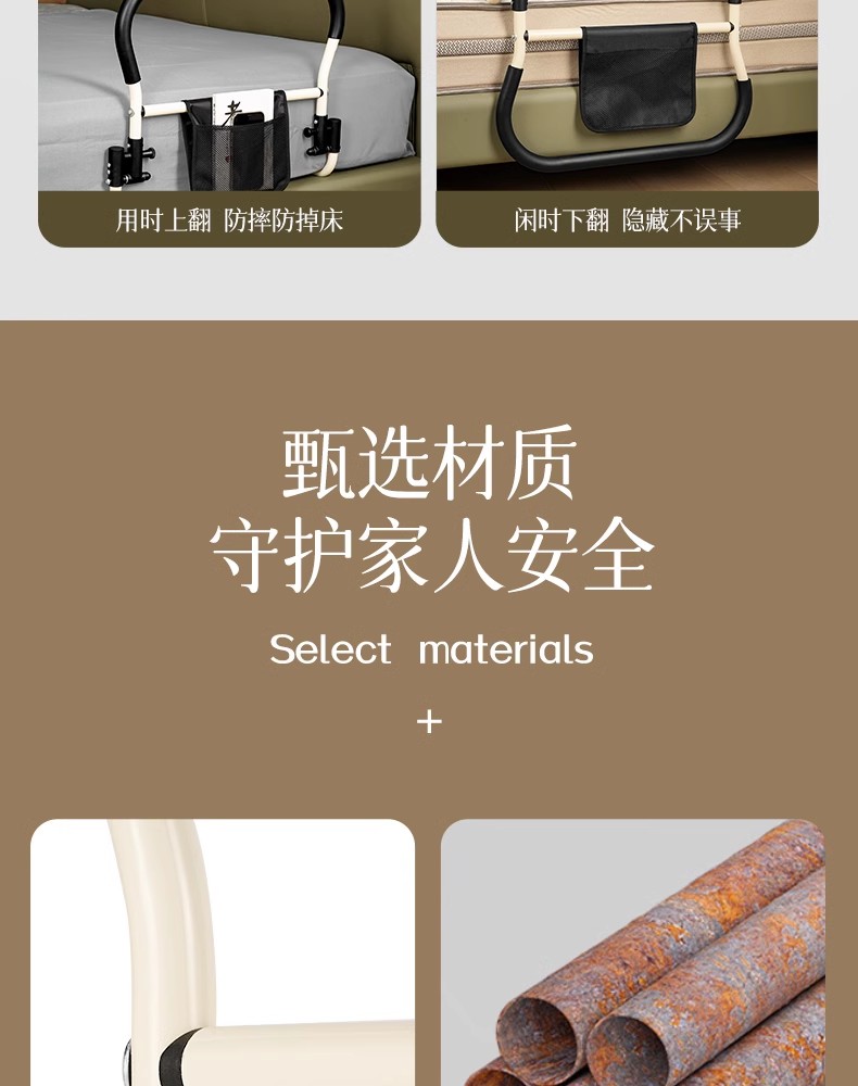 甄选优质材质,确保了产品的坚固耐用,同时也守护了家人的安全。特别值得一提的是,这款床边扶手还带有安全带,底部受力面积大,能够给家人提供更好的保护,确保他们在使用过程中的安全与舒适。