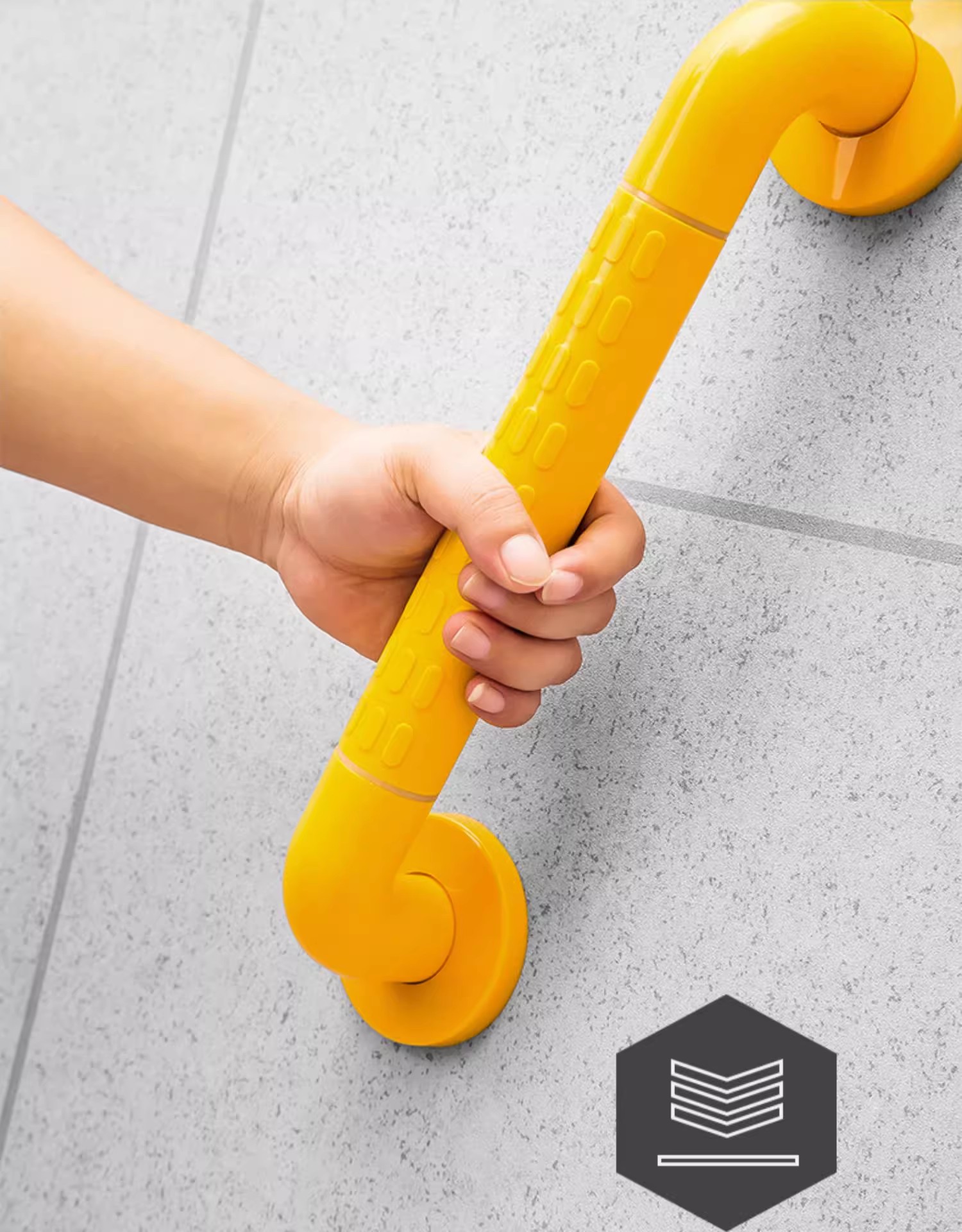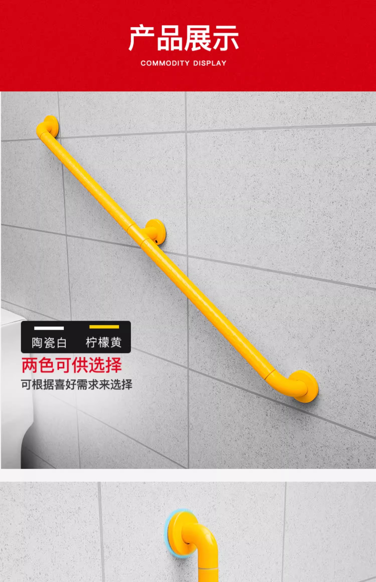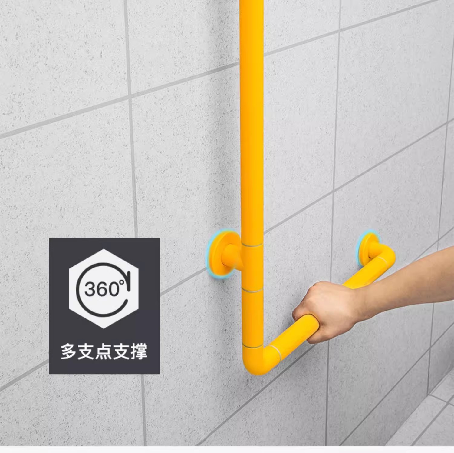 该扶手配备了防滑颗粒把手,这种设计可以有效增加手部摩擦力,防止手滑脱,从而为老人以及需要者提供最贴心的守护。无论是在浴室、厕所还是走廊等场所,这款扶手都能够为使用者提供稳定的支撑和安全感。
