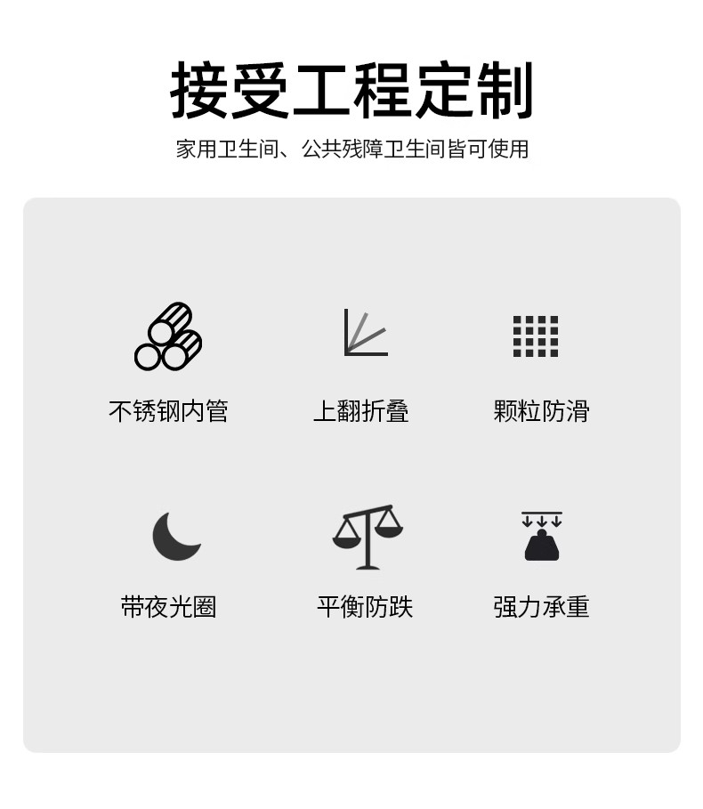 此外,这款扶手还采用了人性化的设计,荧光效果定位可以避免磕碰摔倒,让使用更加安全。大颗粒防滑和凸点防滑的设计可以让手湿的时候也不会打滑,增强了摩擦力,避免了摔倒的风险。
